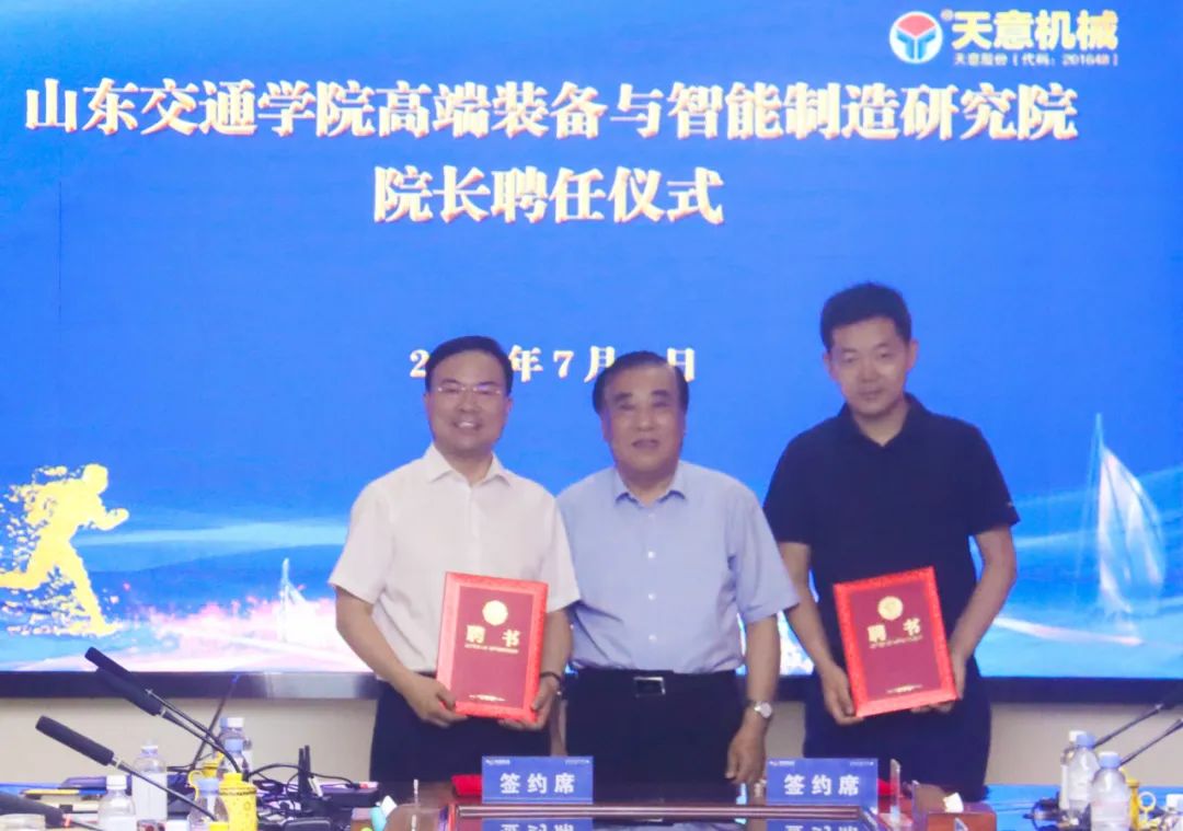 劉洪彬董事長(zhǎng)被聘任為山東交通學(xué)院高端裝備與智能制造研究院院長(zhǎng),張林被聘任為山東交通學(xué)院高端裝備與智能制造研究院副院長(zhǎng),王煥斌為劉洪彬、張林頒授頒發(fā)山東交通學(xué)院高端裝備與智能制造研究院聘書。