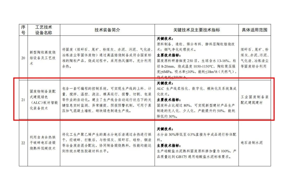 天意機械主導產品包括輕質墻板智能裝備、PC智能裝備、蒸壓加氣混凝土(ALC)板材智能裝備、保溫裝飾一體化板智能裝備等系列。設備均以固廢物利用為研發(fā)條件,不斷進行設備及配方的更新。此次入選目錄的是ALC板材智能裝備,該設備關鍵技術涉及ALC生產線柔性化、數字化、模塊化及系統(tǒng)集成化技術。該生產線固廢料占比超過80%,可實現新型建材產品生產制造的無人化、少人化,產能提升約50%,能耗降低約30%。