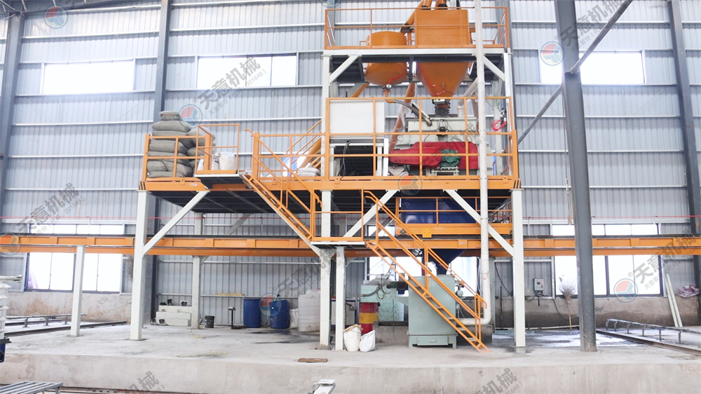 1.采用水泥發(fā)泡墻板專用5立方雙螺帶式高速攪拌機,有效容積為3.5立方,攪拌均勻,攪拌速度快(發(fā)泡完成后60秒內(nèi)可將泡沫和料漿攪拌均勻),整體攪拌周期6-8分鐘/次,單次攪拌可澆筑一臺20塊墻板機,雙寬螺帶式設(shè)計,可有效的降低泡沫破損率.